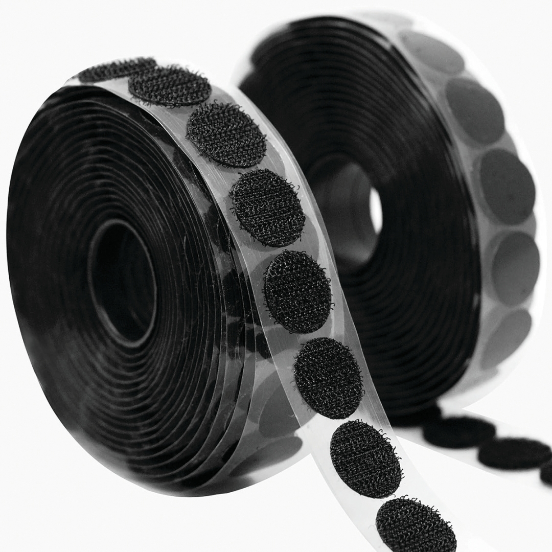 100 PC 3/4" Velcro Circles with Adhesive backing. You will receive 100 hook and 100 loop circles per quantity of 1 ordered.