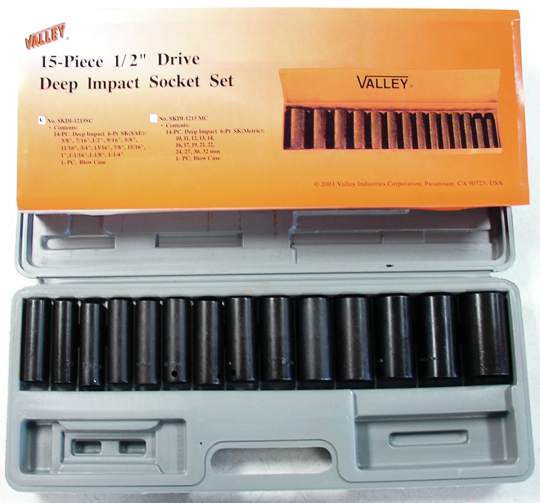 Specifically designed to be used with impact wrenches 6 Point design grips the flat walls of the fastener heads for high torque use Contents: | 14 pc. Deep impact 6 point socket(Metric):