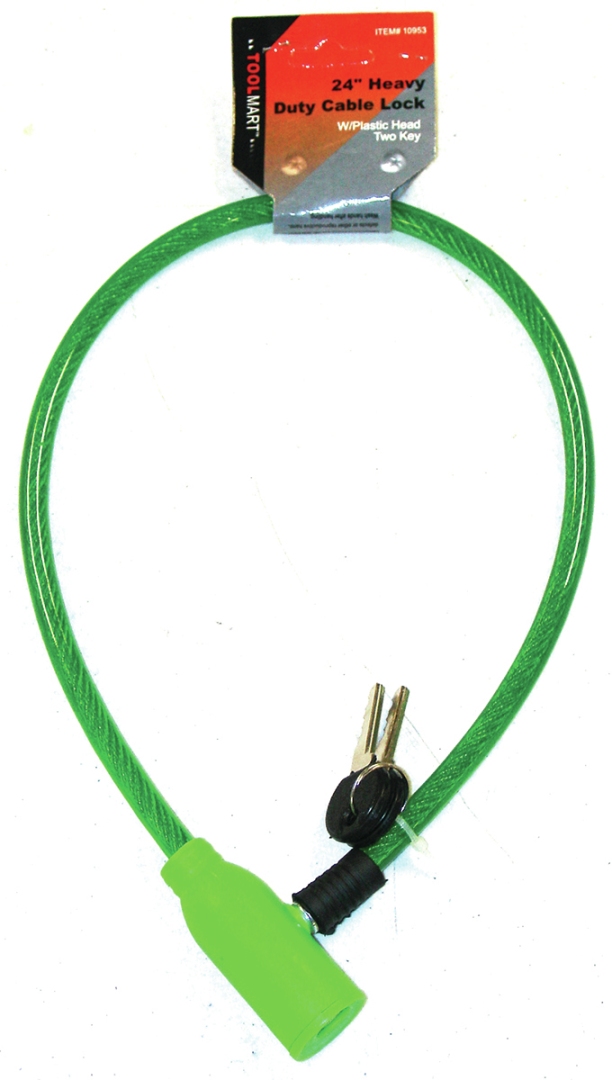 24" Cable Lock with 2 Keys. Assorted Red, Blue & Green Colors Per Case