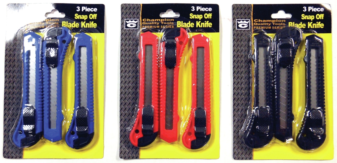 3 PC Snap Off Utility Knife. Assorted Colors Per Case