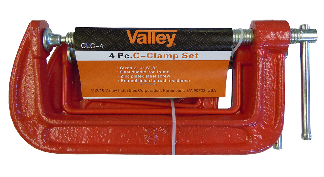 4 PC C-Clamp Set, 3", 4" , 6" & 8"