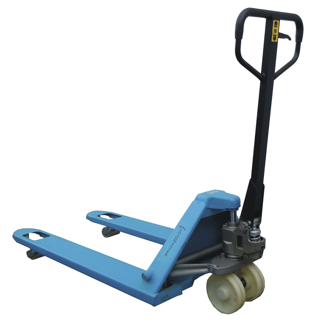 | Heavy duty pallet jack with a 5,500 Lb working load limit.