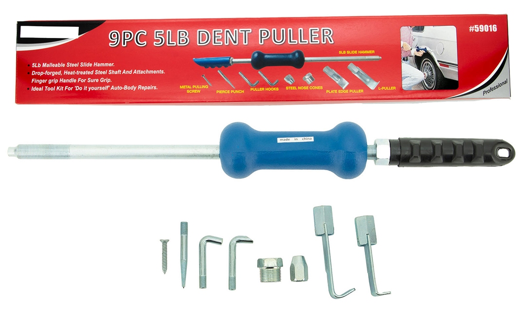 5PC Automotive Body Dent Puller Kit. 5 Pound Slide Hammer with Attachments