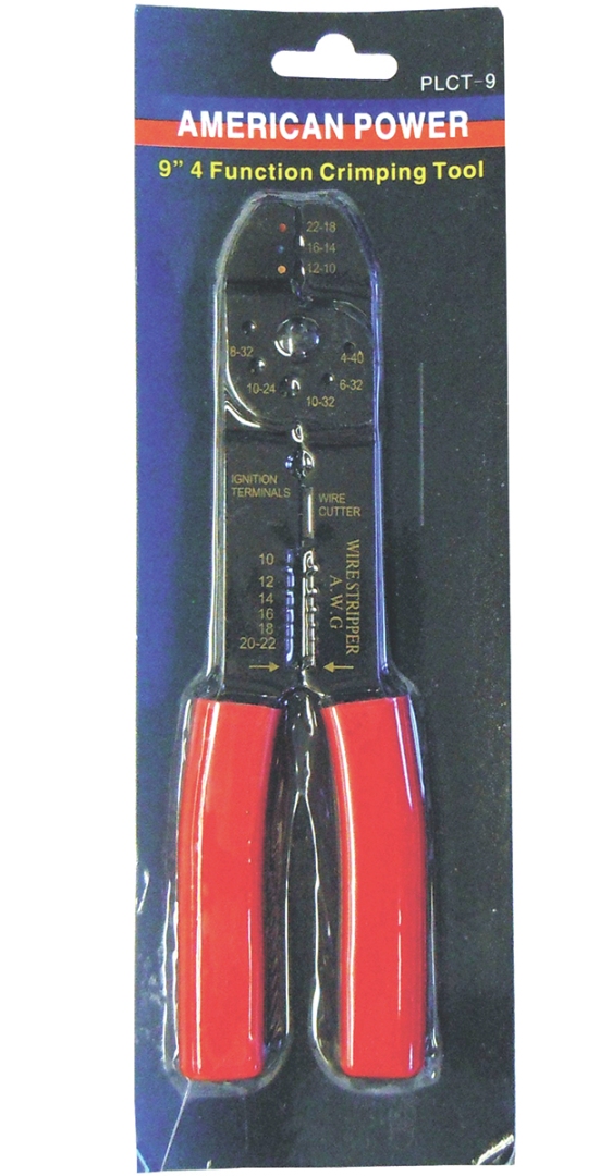 Black enamel finish for durability PVC non-slip grips Unique 4 function tool featuring: | Color coded crimper