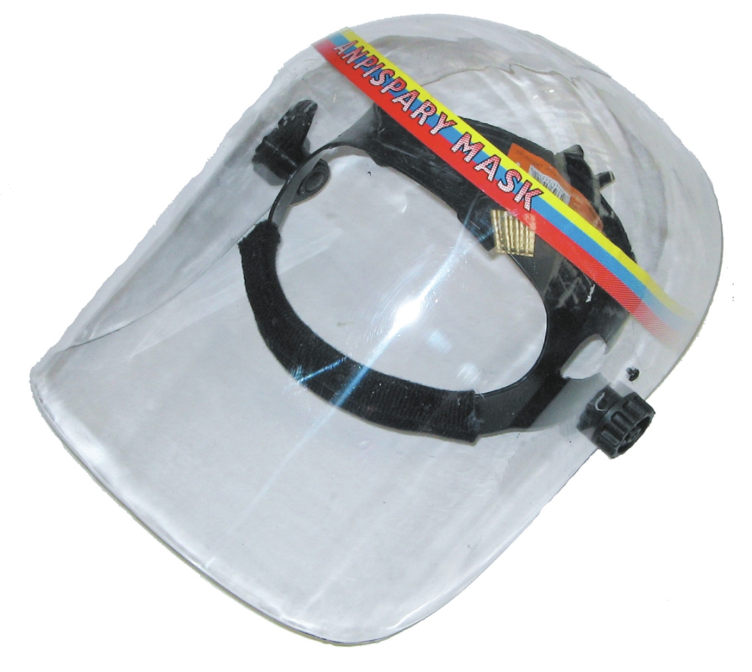 Clear polycarbonate shield protects the wearer from flying abrasive particles and chemical splash