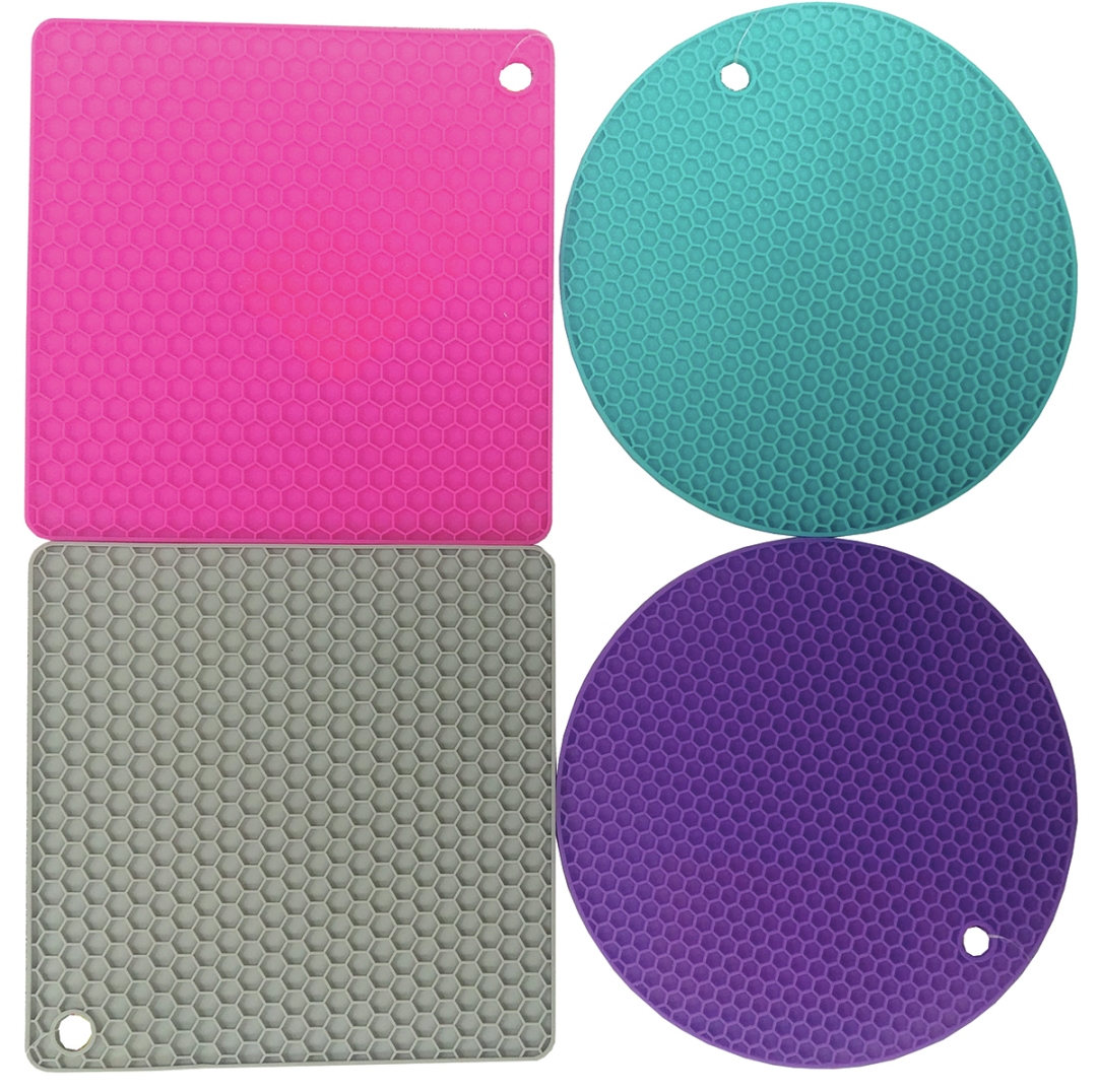 Silicone Pot Holder - Trivet. Assorted Colors and Shapes Per Case. Packaged with Hang Tag and UPC.
